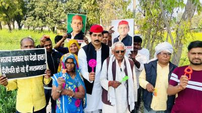 किसानों की मांगों को लेकर विकास भवन पर भाकियू का धरना