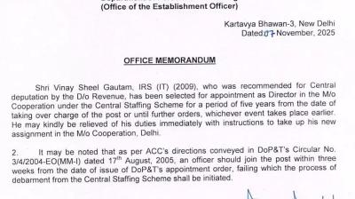 केंद्र में IAS अफसरों की बड़ी तैनाती: सहकारिता, पेट्रोलियम और MSME मंत्रालयों में पदस्थापना