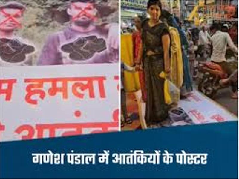 गणेश पंडाल में पोस्टर में लिखा- तुमने धर्म पूछकर मारा, हम पैरों में रौंदने से पहले कौम नहीं पूछेंगे