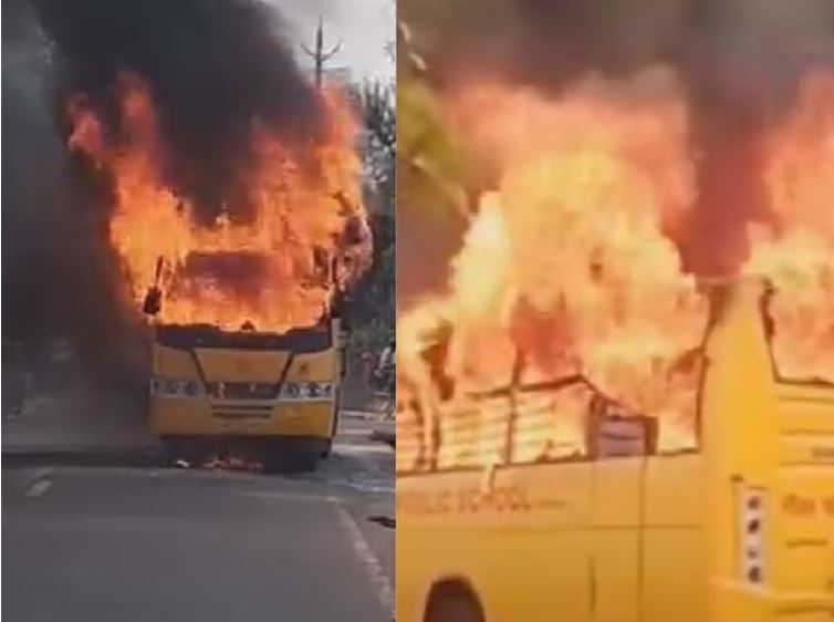 इंदौर में चलती स्कूल बस अचानक बनी आग का गोला, गनीमत रही कि सभी बच्चे सुरक्षित बाहर निकाल लिए गए