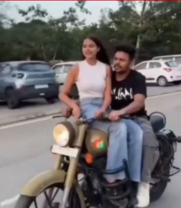 बाइक की टंकी पर युवती को बैठाकर चलाया वाहन, वीडियो वायरल