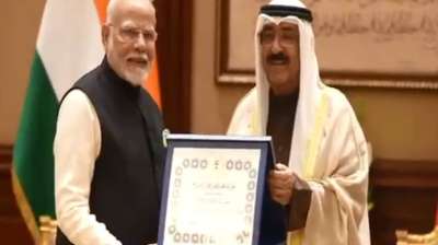 कुवैत सिटी। प्रधानमंत्री नरेंद्र मोदी को खाड़ी देश कुवैत की दो दिवसीय ऐतिहासिक यात्रा के दौरान रविवार को बयान पैलेस में गार्ड ऑफ ऑनर पेश किया गया। यह सम्मान उन्हें...
