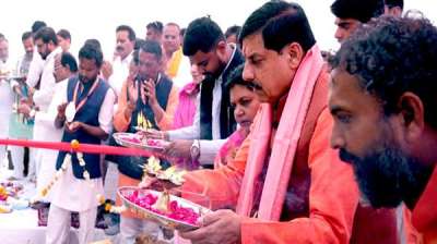 मुख्यमंत्री डॉ. यादव ने ओंकारेश्वर में माँ नर्मदा की पूजा-अर्चना कर प्रदेश की समृद्धि की कामना की