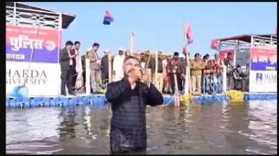 डीजीपी प्रशांत कुमार ने संगम में डुबकी लगा कर की सुरक्षा तैयारियों की समीक्षा