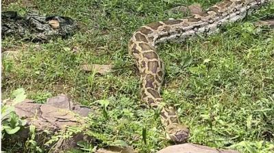 गांव के पास 15 फीट अजगर की मौजूदगी से फैला दहशत का माहौल, सुरक्षा बढ़ाई गई