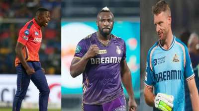 आईपीएल 2025 में कोलकाता नाइट राइडर्स के लिए खेल रहे आंद्रे रसेल का बल्ला...